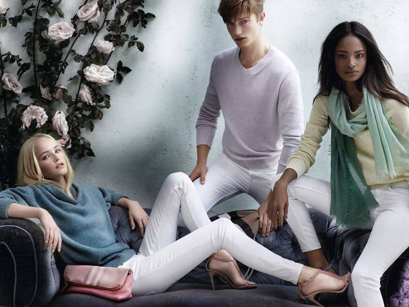 For Burberry’s spring-summer 2014 campaign, the English luxury brand taps a cast of British models and talent including former Prada face Malaika Firth as well as Jean Campbell Bower, Leo Dobson, Matilda Lowther, Neelam Johan and Callum Ball. The group poses for Mario Testino in the designs of Christopher Bailey including laces, cashmere and a pastel color palette.