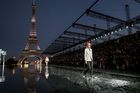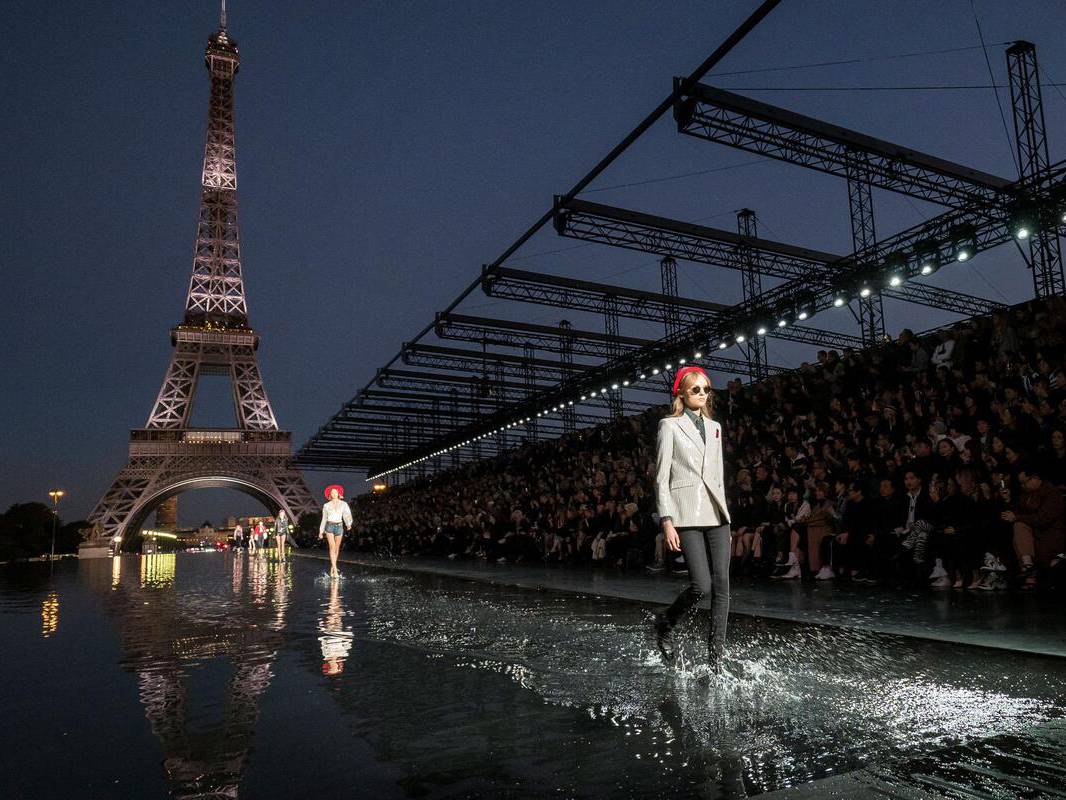 Eiffel Tower reflected in the pool and a line of fake white palm trees, Anthony Vaccarello embraced the masculine-feminine style for his latest Spring-Summer 2019 creation for Saint Laurent.