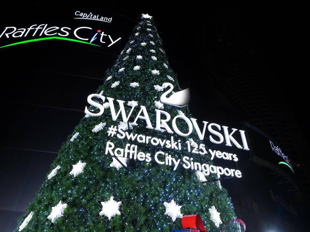 Swarovski is celebrating its 125th anniversary, partnering with Raffles City shopping mall in Singapore. The collaboration sees an impressive 15-metre tall Raffles City x Swarovski tree light up the bustling junction of Stamford Road and North Bridge Road.