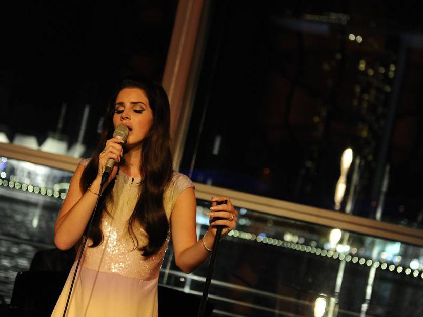 Guests were transported in cars provided by Jaguar to dinner at Catalunya restaurant where they enjoyed aperitifs on the deck overlooking Marina Bay before sitting down to a three-course dinner. Lana Del Rey performed an exclusive set after dessert, she wore the Sequin Ombre Dress from the Spring Summer 2013 Collection and carried the Del Rey in Ink Blue Croc Print from the Autumn Winter 2012 Collection.