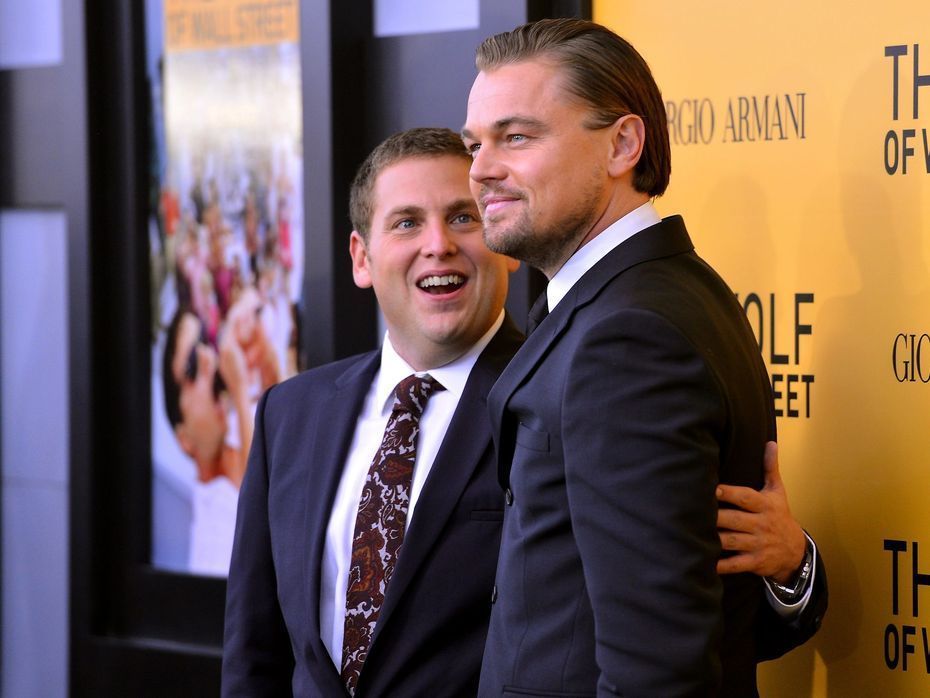 As Wall Street tycoon Belfort, the film’s star Leonardo DiCaprio is featured in Giorgio Armani's period style, circa 1993.