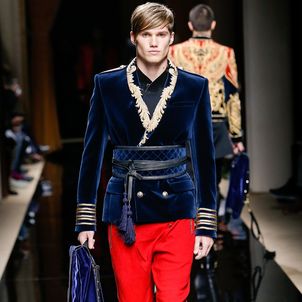 The Hungarian Army's elite horsemen, the Gay Hussars, were brought to the runway for Olivier Rousteing's luxurious showcase for Balmain menswear's Fall/Winter 2016/2017 season.