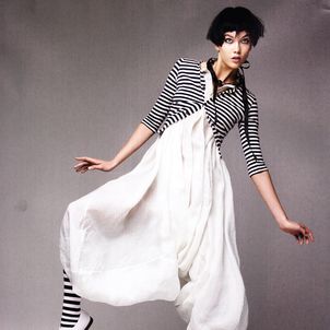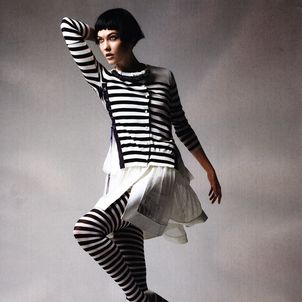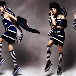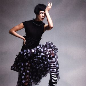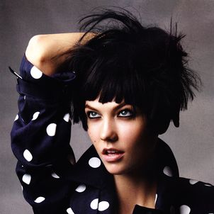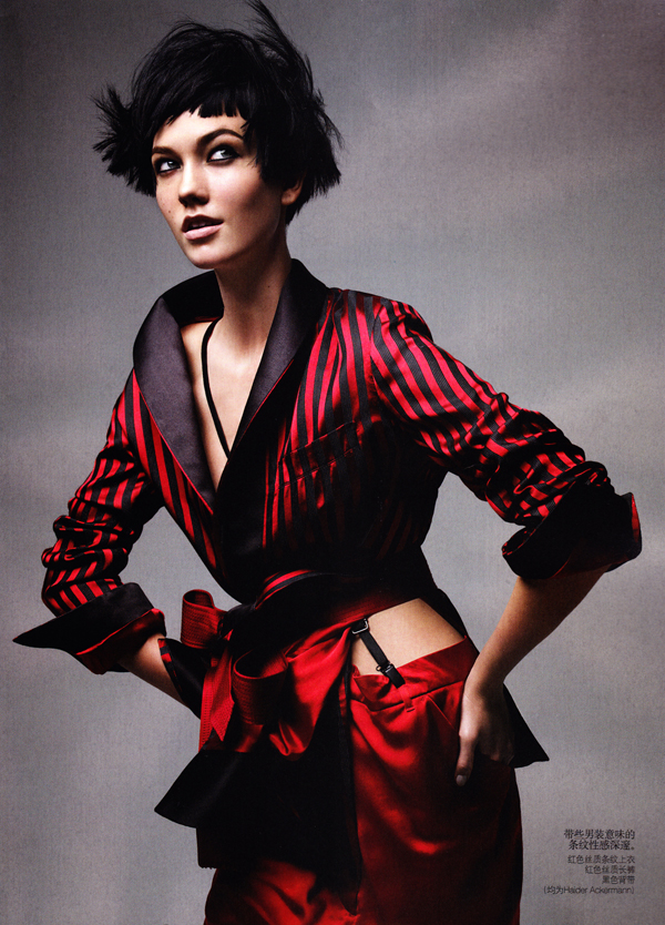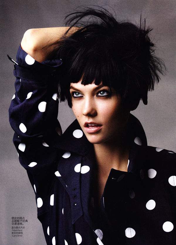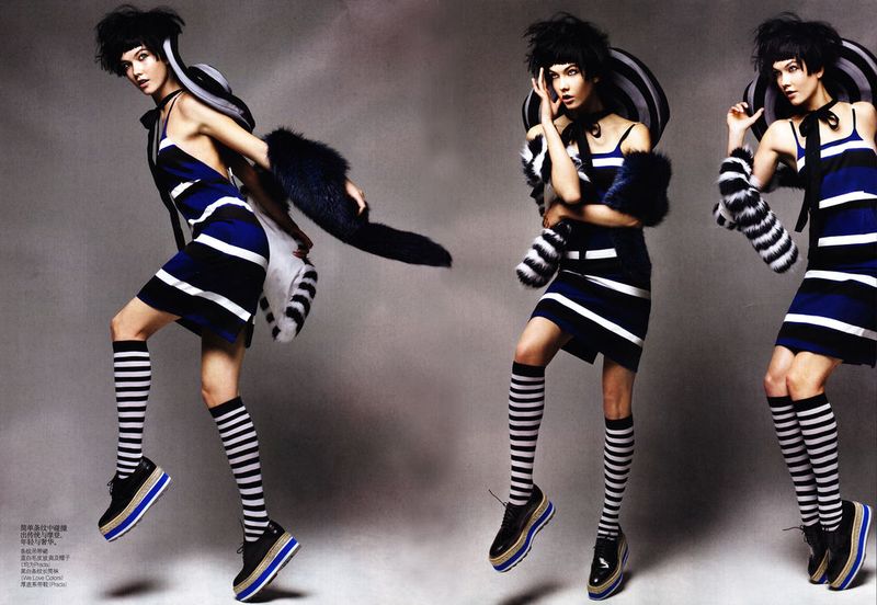 Photographed by Patrick Demarchelier and styled by Nicoletta Santoro, model Karlie Kloss is in "Graphic Play" in a fashion editorial for Vogue China.