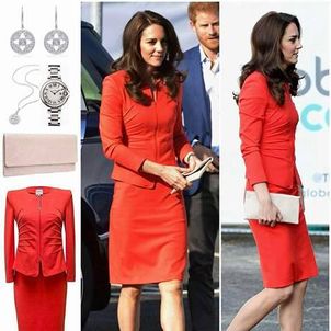 For jewelery, Kate had a Mappin & Webb necklace and earring set. The 'Empress Drop Earrings' is a 18ct gold set in 0.17ct of diamonds. Her necklace is also made of 'Empress' collection and set in 0.40 carats of round brilliant-cut diamonds in 18ct white gold. She also had her Cartier Ballon Bleu watch.