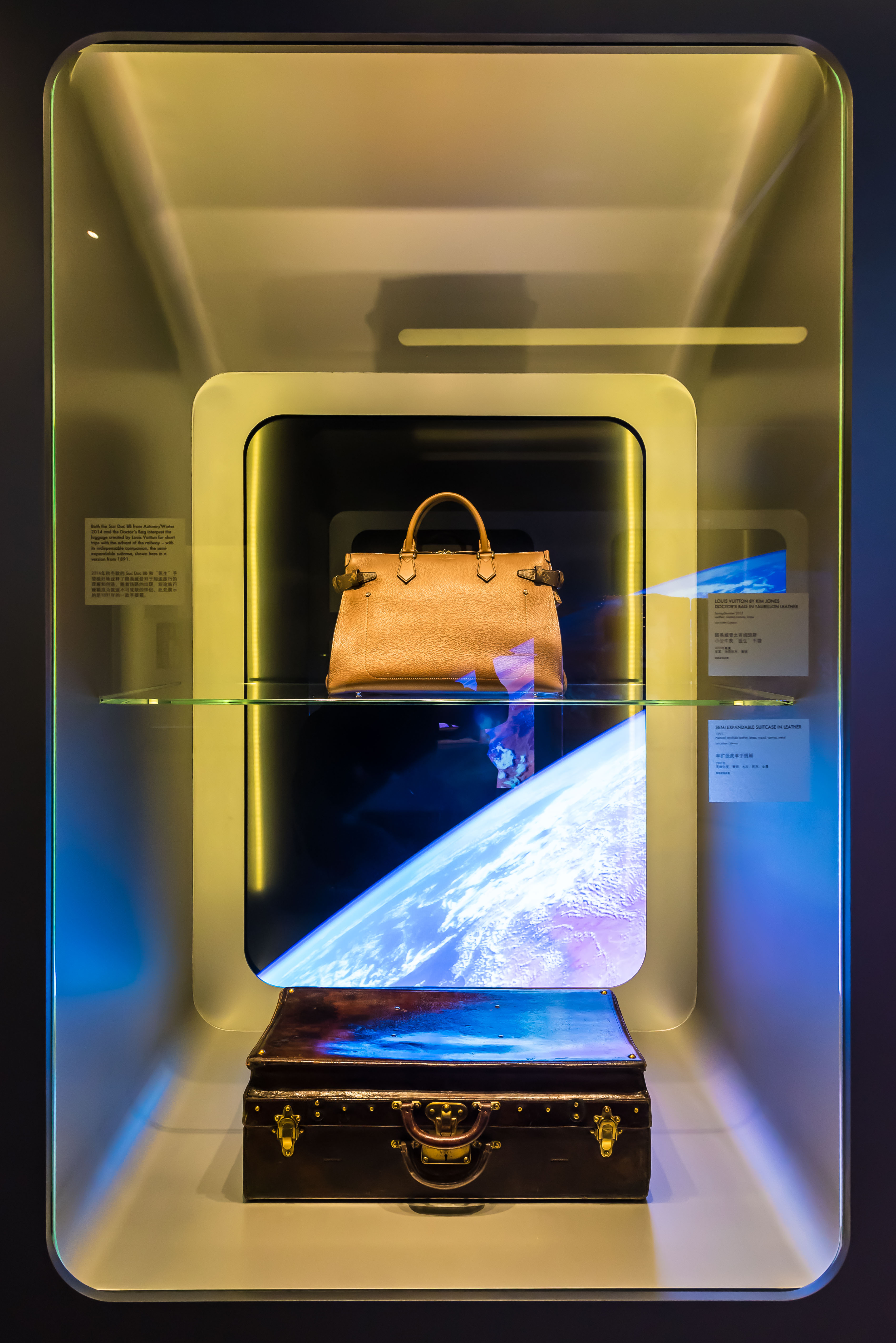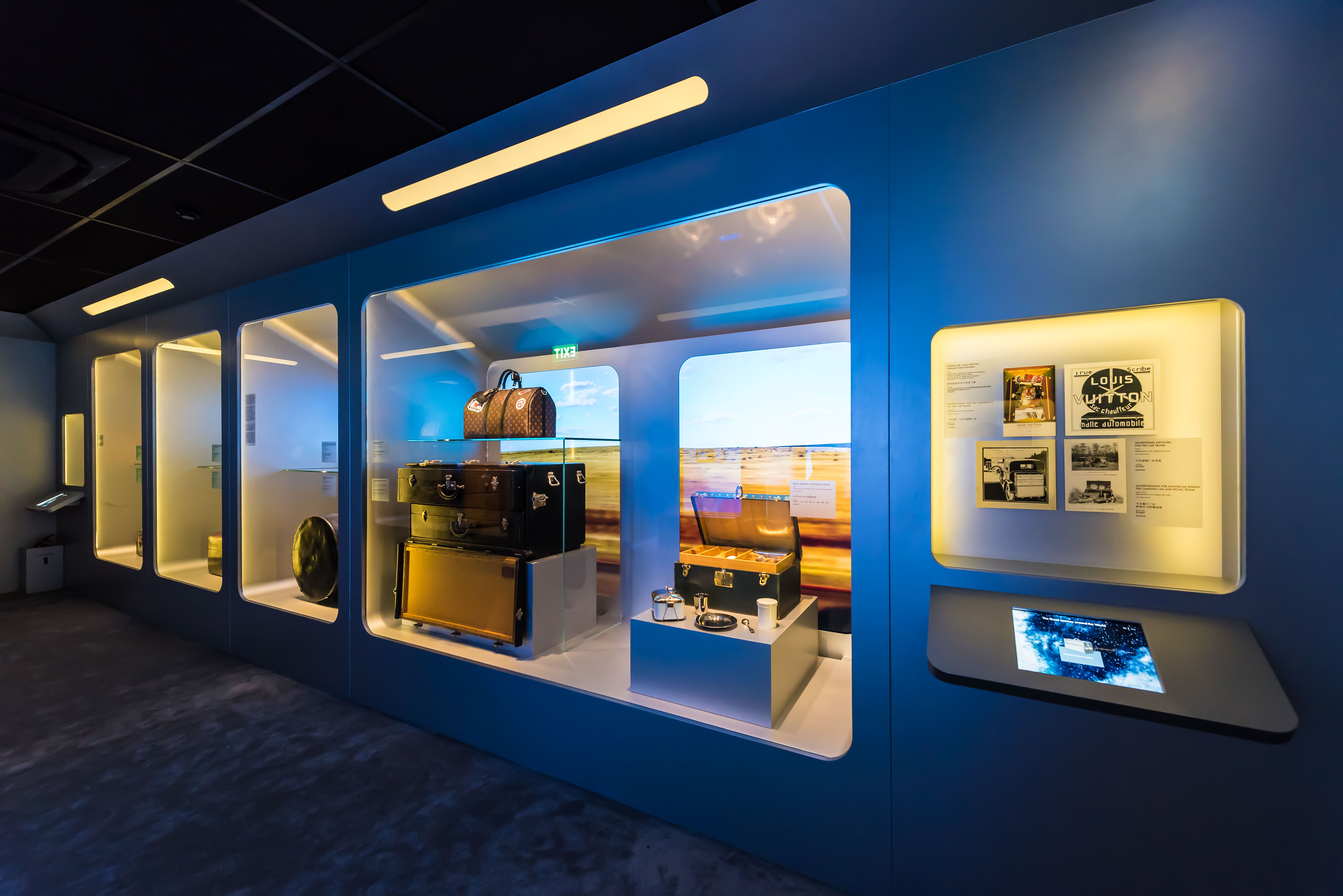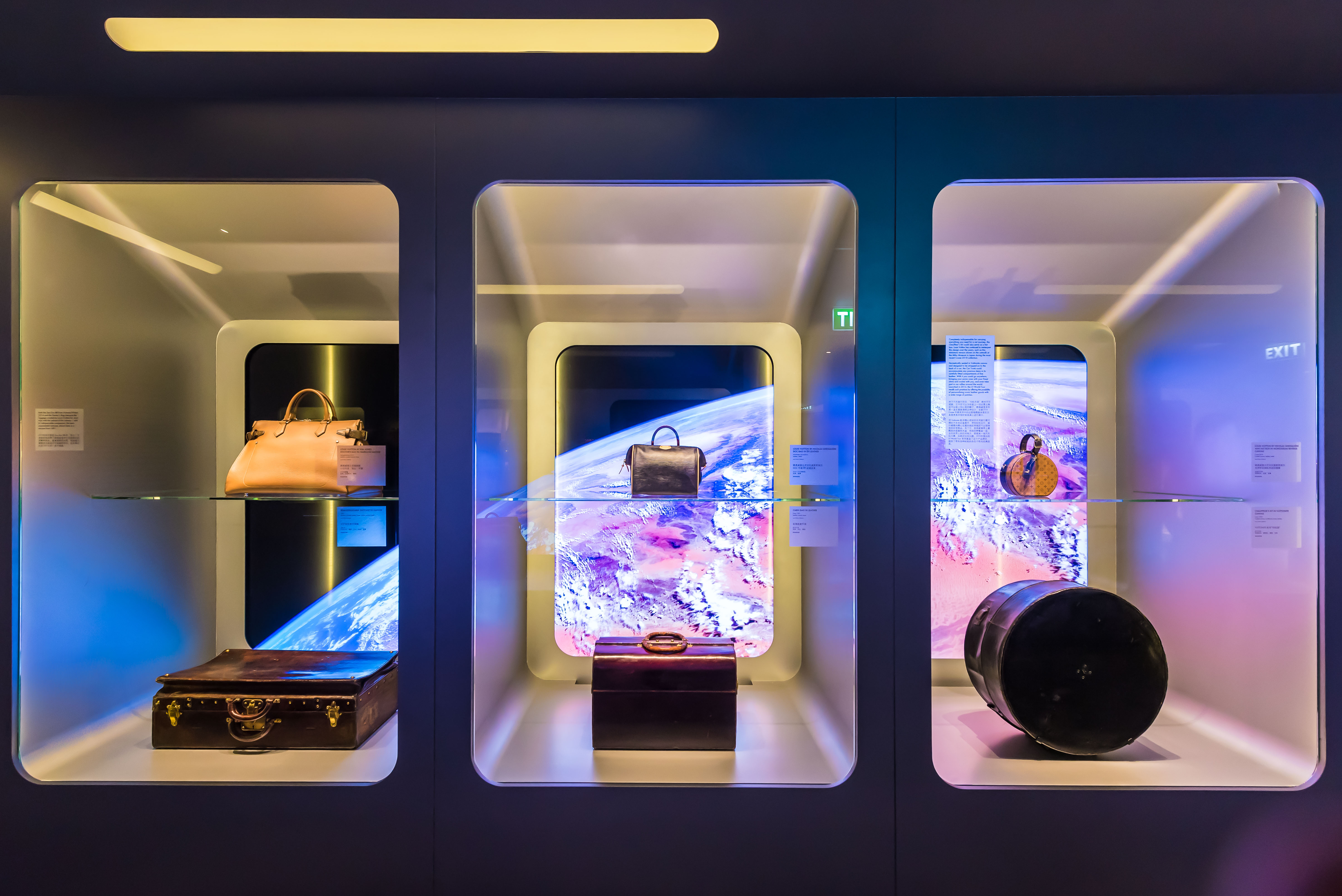The exhibition follows a visual timeline, focusing on five key aspects such as the Codes of the House, Journeys around the World, Elegance and Beauty in Motion, Louis Vuitton and the Arts and Magic Malle.