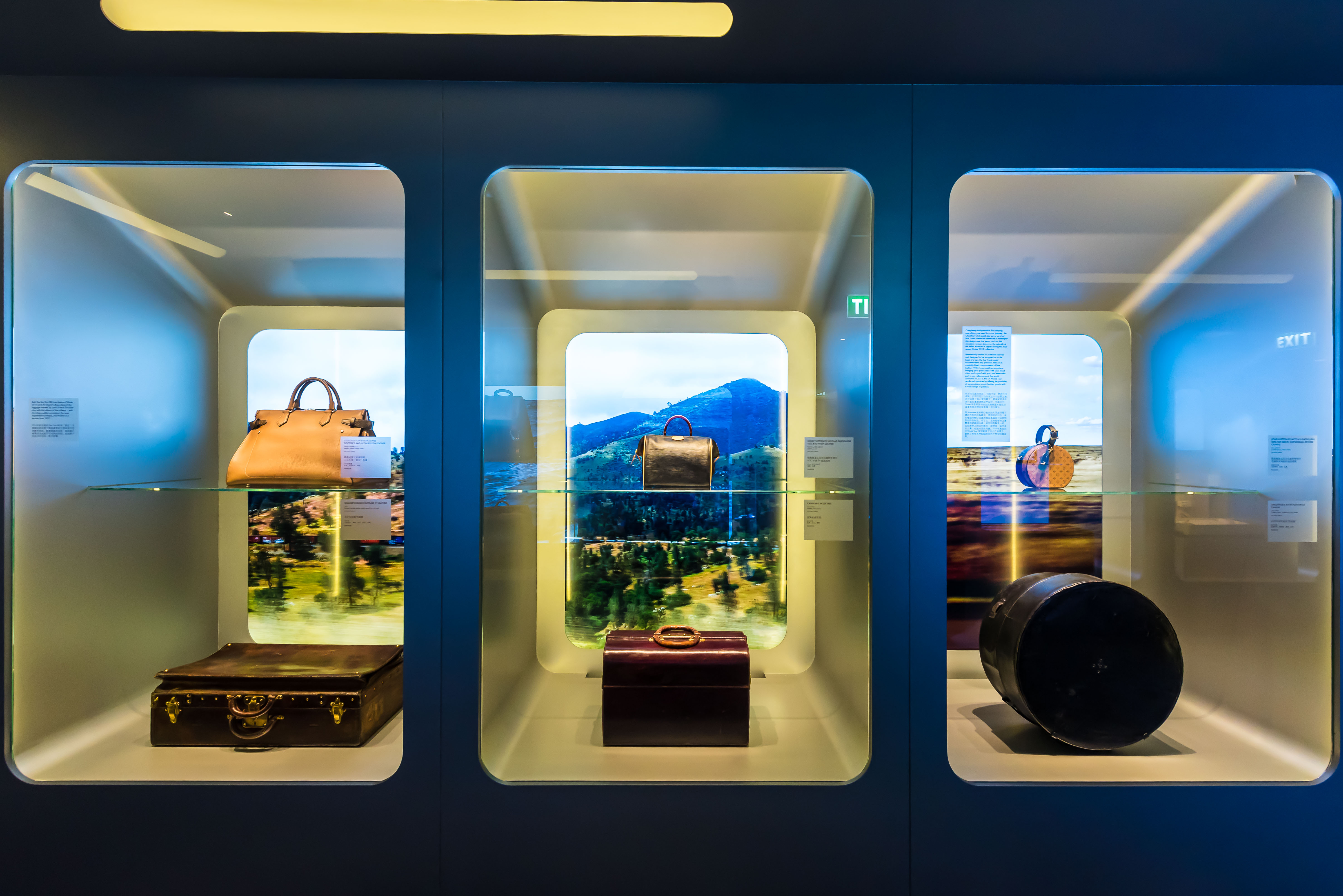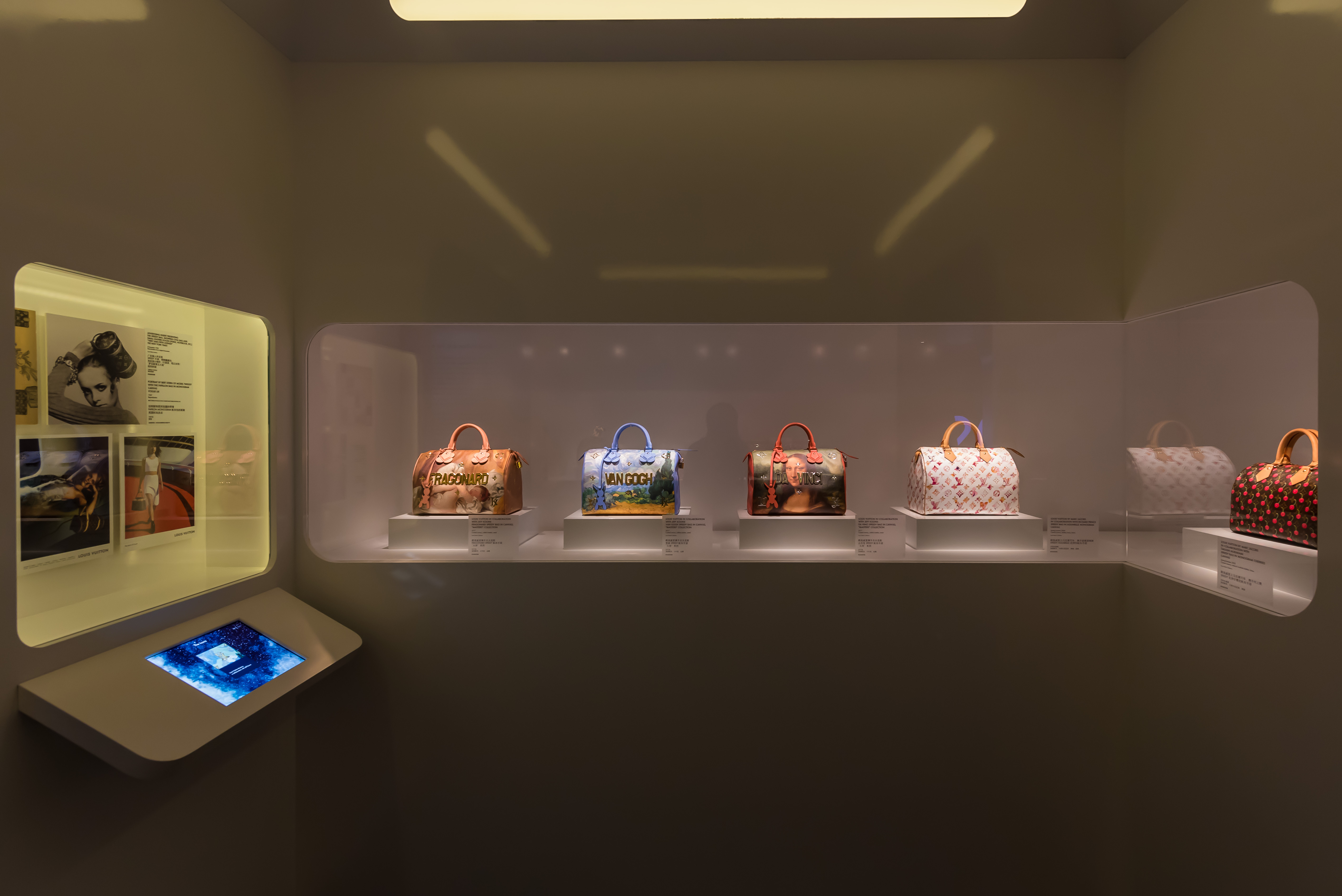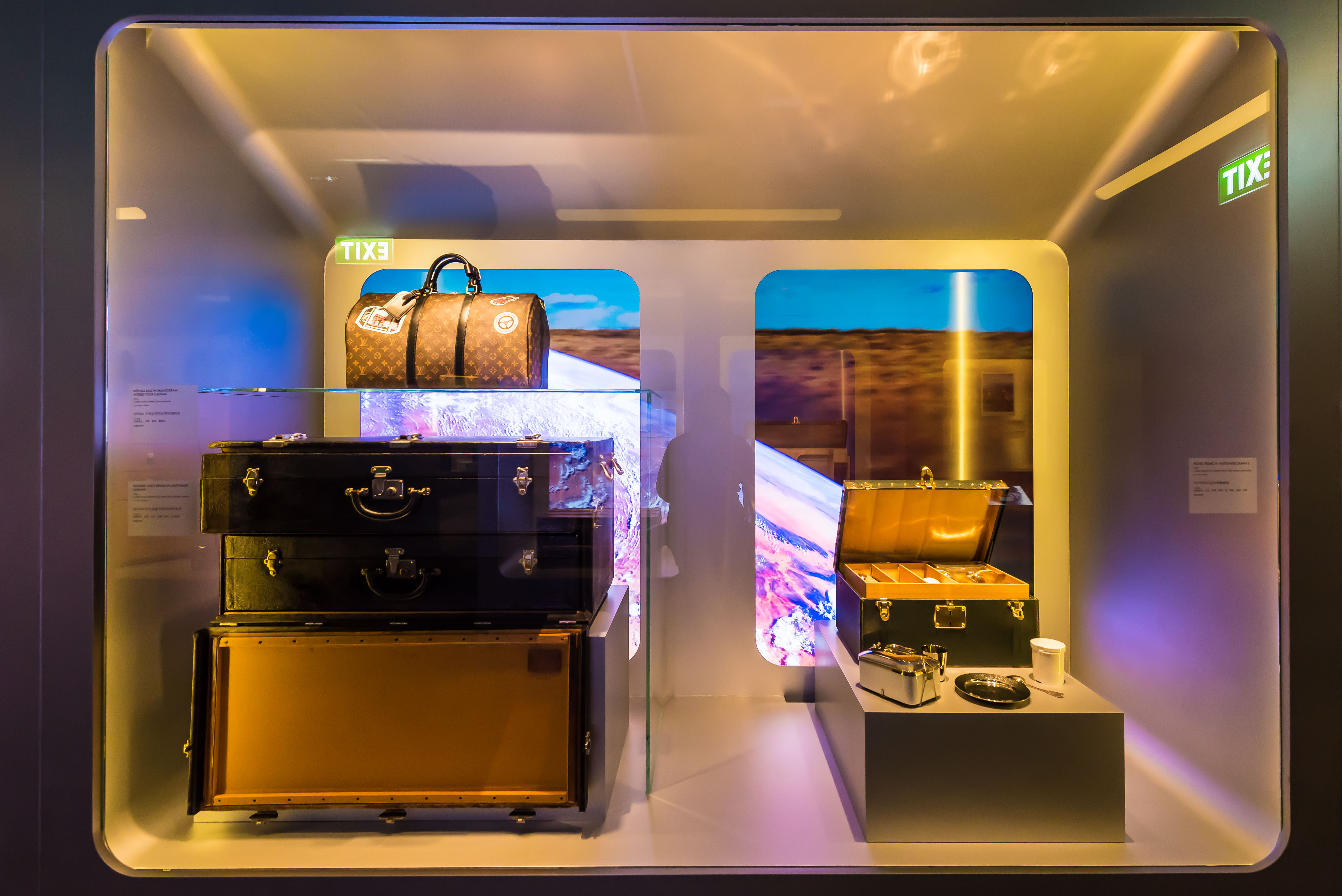 The exhibition follows a visual timeline, focusing on five key aspects such as the Codes of the House, Journeys around the World, Elegance and Beauty in Motion, Louis Vuitton and the Arts and Magic Malle.