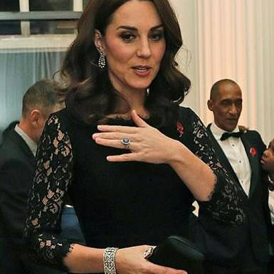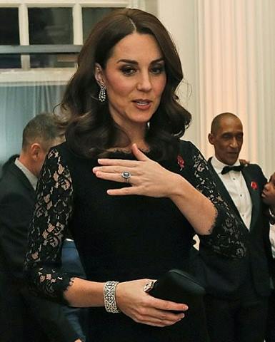Also to make a reappearance were the beautiful diamond drop earrings owned by The Queen. Kate has worn these three times already, so she clearly keeps these in her jewellery box, on a loan from Her Majesty, rather than a one-off borrow. Not much is known about the history of these earrings.