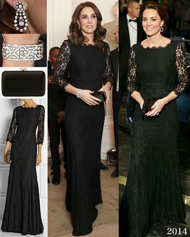 The Duchess was back in her gorgeous lace Diane Von Furstenburg gown for gala dinner at Kensington Palace.