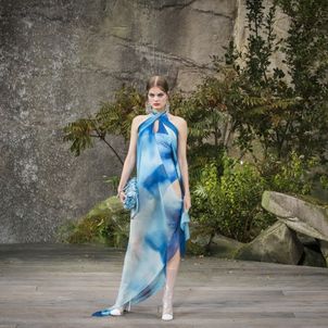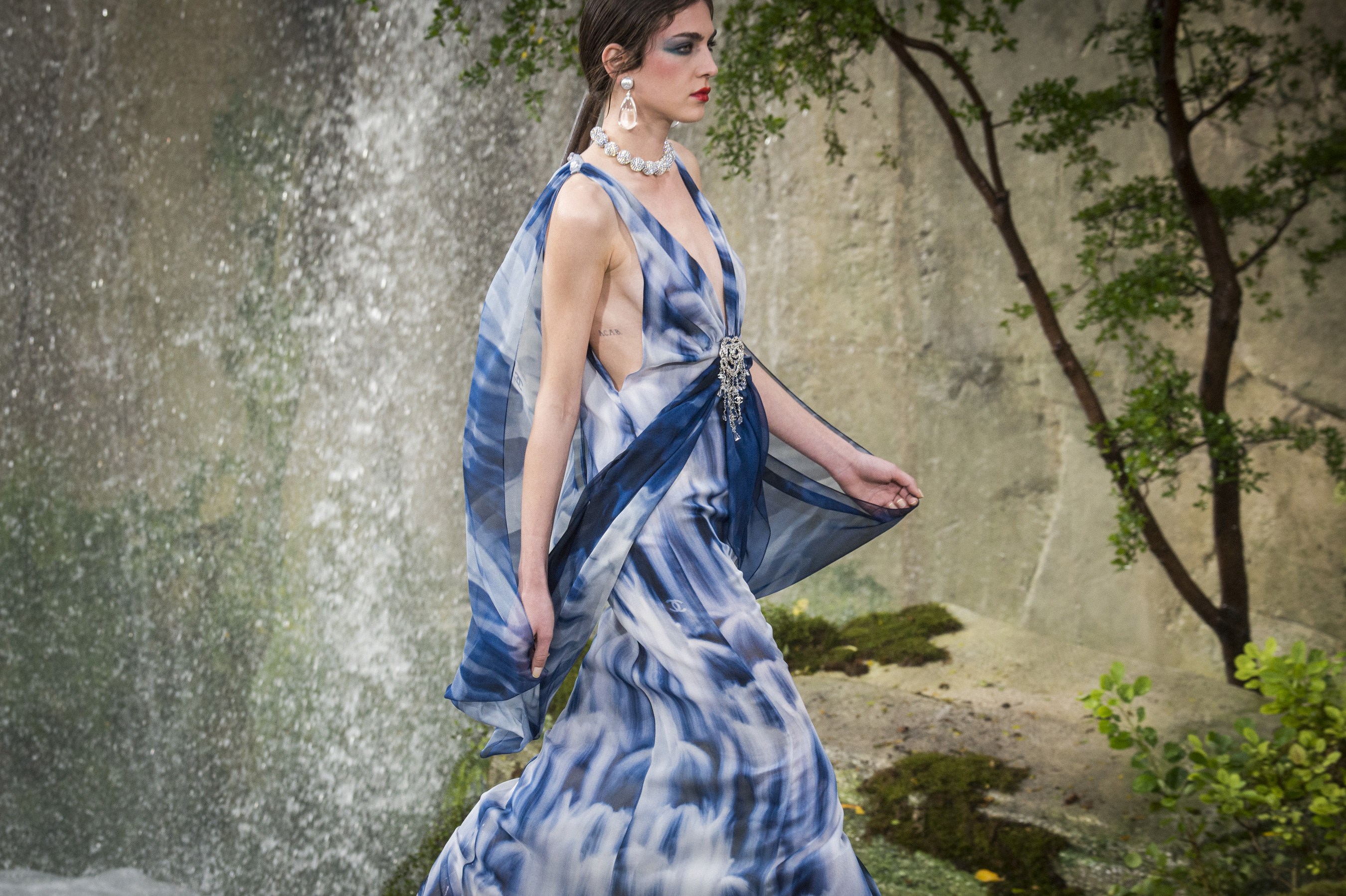 The Chanel Coco Beach collection includes swimsuits and bikinis, lightweight dresses, shorts and Breton-striped tops, belted at the waist. There’s also a selection of accessories, including bags, camera cases, pouches and colorful espadrilles.