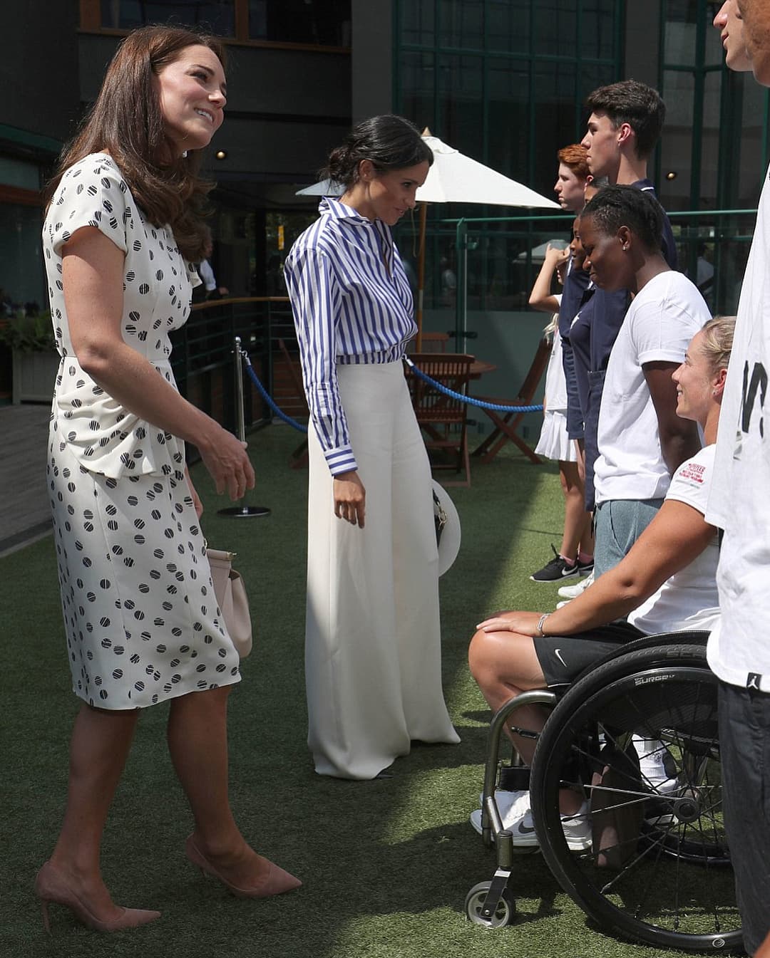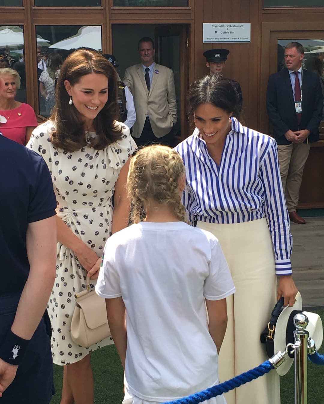 Prior to watching the match, Kate and Meghan met a number of Wimbledon ladies champions, as well as some of the Championships’ ball boys and ball girls involved in the tournament.