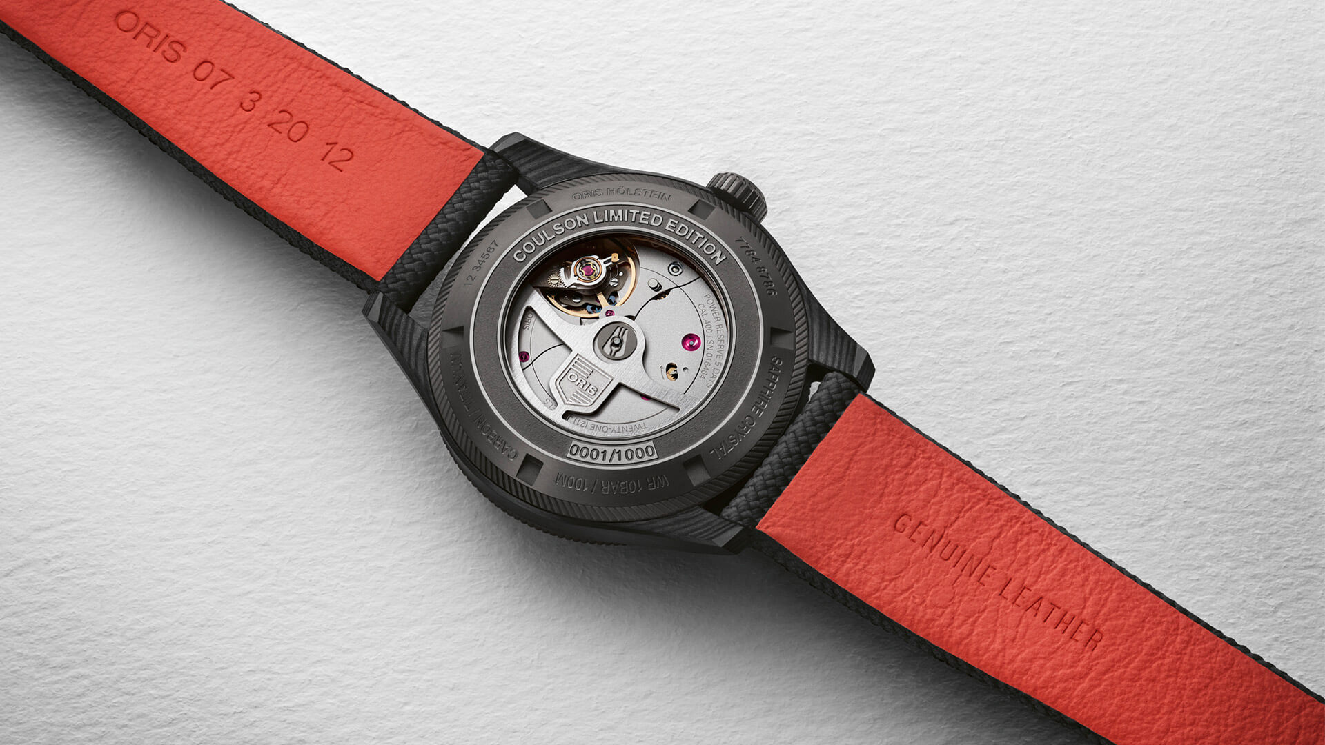The Oris Coulson features a carbon-fibre case made using an innovative 3D printing process never seen in watchmaking before, and a fiery gradient orange dial. Inside it is Oris’s game-changing Calibre 400 five-day automatic.