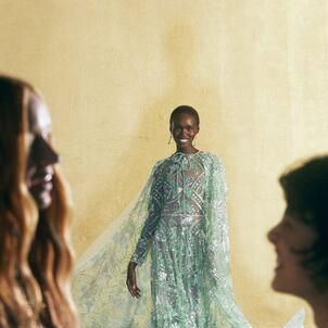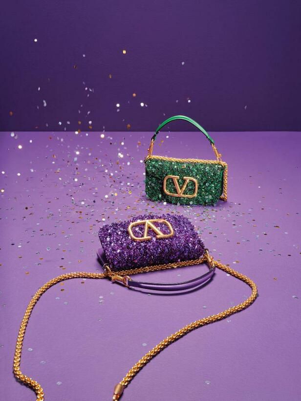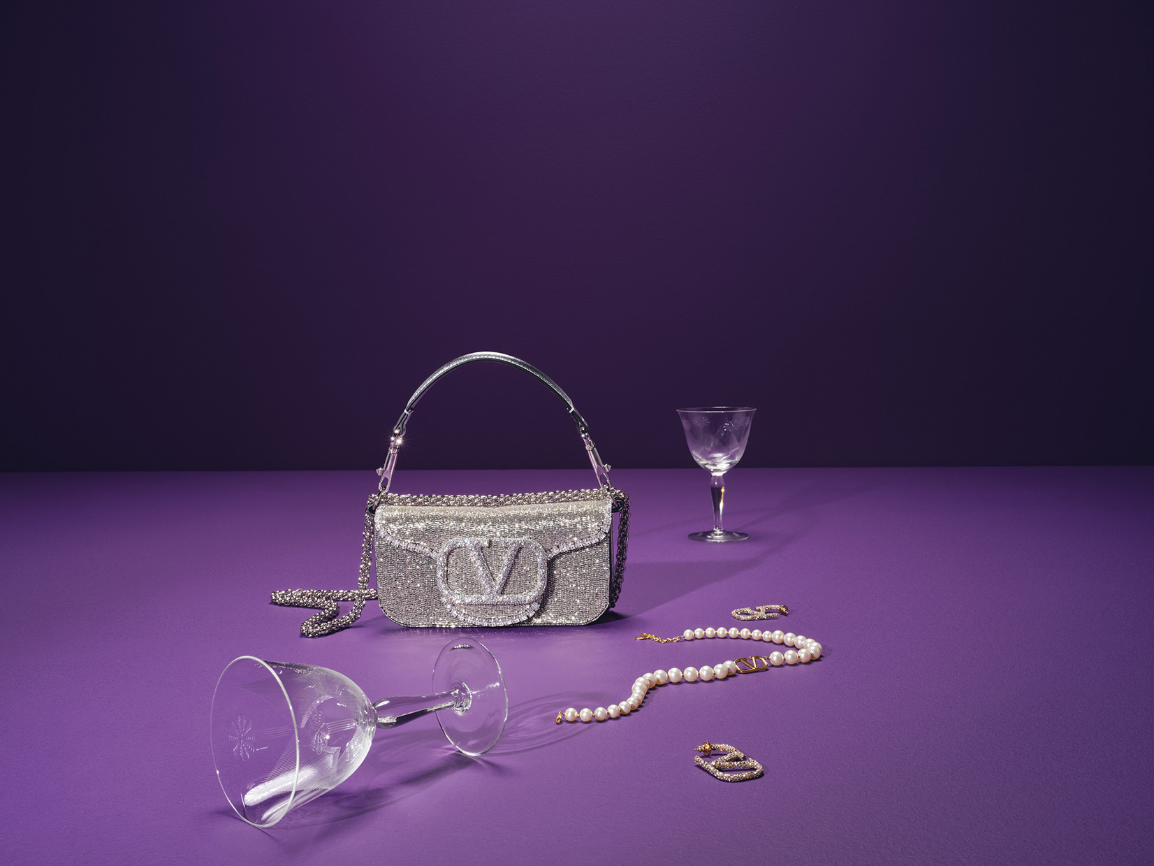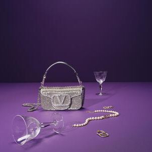 Included in the capsule for women are new multicolour tweed bouclé garments, along with the Valentino Chain 1967 pattern, and an optical V Gold texture. Also in the mix: an array of embroidered options that stand as a testament to craftsmanship. From rainbow-colored shimmering jackets to rhinestone-embroidered jackets inspired by the archives, the capsule is treated with a heavy dose of holiday maximalism, and complemented with a selection of Valentino Beauty products along with eyewear envisioned with Akoni.