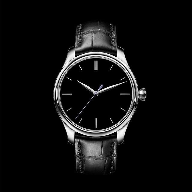 Into the deepest dark: Presenting the H. Moser & Cie Endeavour Centre Seconds Vantablack®, a new model in stainless steel with the blackest dial around, featuring hour markers ingeniously set behind the dial. Its purple second hand signifies that this version of the HMC 200 automatic manufacture movement features a double-hairspring.