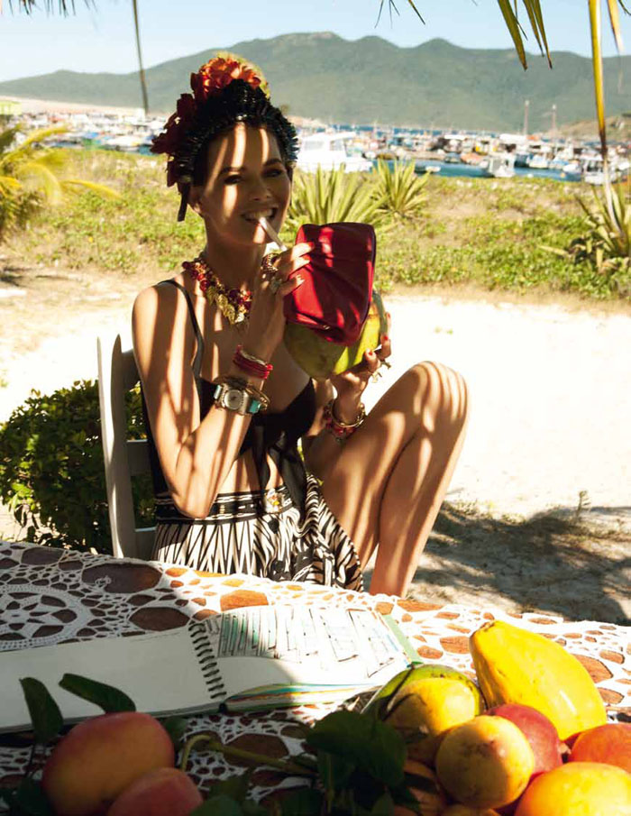 Model Flavia de Oliveira photographed by Marcelo Krasilcic showcasing the Spring/Summer designs from labels Dior, Yves Saint Laurent, Moschino and more.