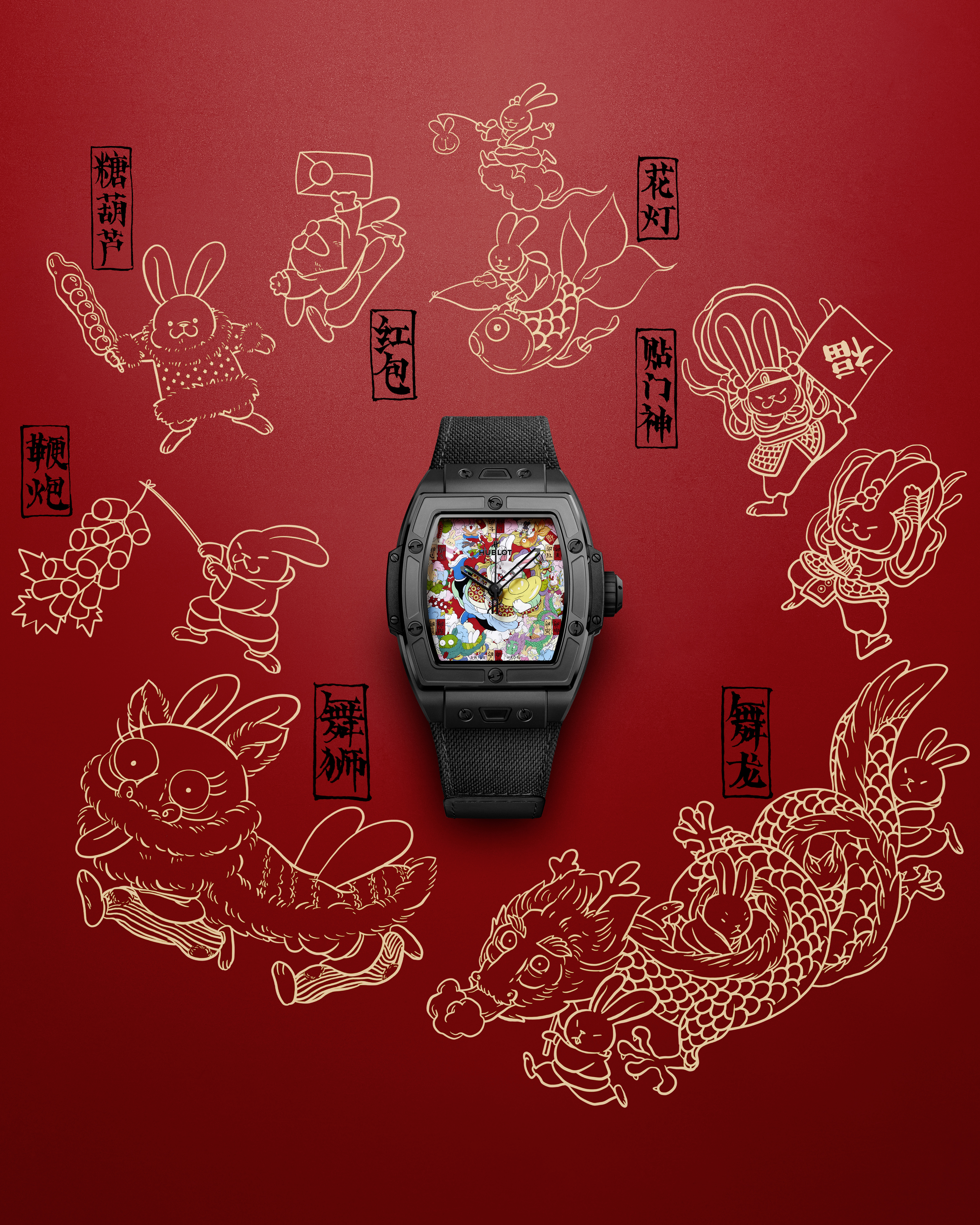 Hublot celebrates the Year of thebRabbit with the new Spirit of Big Bang Black Ceramic Rabbit created in collaboration with Chinese artist Wen Na.
