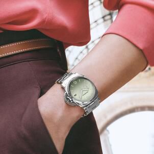 With an elegant, urban-chic design, its watch dial darkens into a deeper gradient from the top to bottom, and is available in pastel green pastel blue and pastel pink.