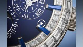 This new 35mm line features five references revolving around the two key models: the 2125, featuring a central second hand; and the 2145, distinguished by a poetic moon phase. The 2125 is available in three dial hues (silver, denim blue, and Burgundy) with geometric lines and a sectorized dial. The 2145, with its more poetic aesthetic, evokes the eternal connection between the measure of time and the graceful movement of celestial bodies in the nighttime sky. This model is offered in contrasting combinations: rose gold PVD steel with a silver dial or steel with a denim-blue dial. Both the 2125 and the 2145 in stainless steel with denim blue dial add a sleek sparkle with a modern touch of lugs set with 16 lab-grown diamonds.