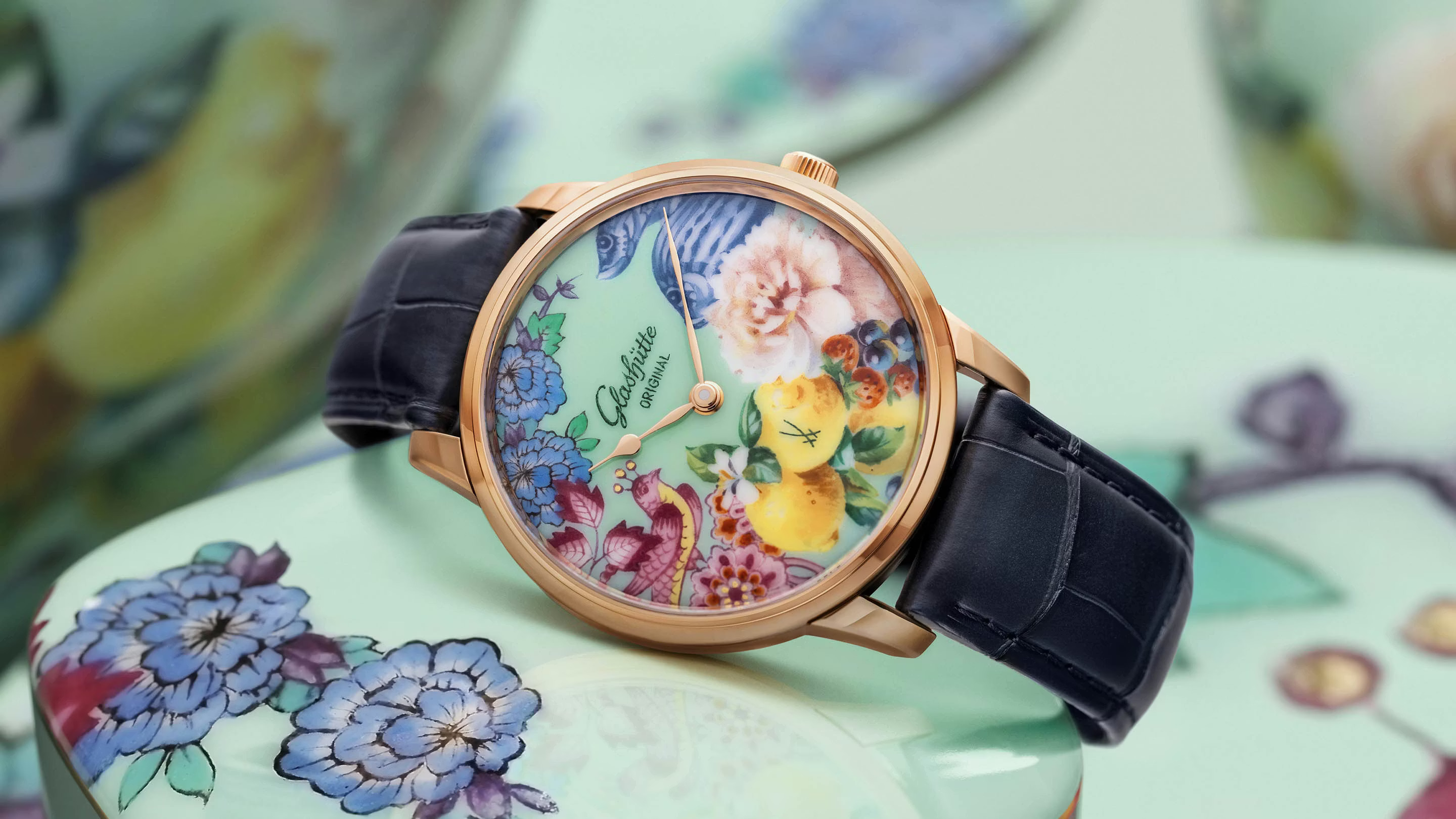 Two masters of their trade have come together to celebrate the very finest in German craftsmanship. The watchmaker Glashütte Original and the MEISSEN porcelain manufactory have joined forces for a very special project inspired by a long-standing friendship. These three limited-edition wristwatches feature delicately painted porcelain dials and combine the values of both brands to form a timeless work of precision and poetry. Framed by an elegant red gold case, the timepieces serve as an homage to exceptional quality down to the tiniest detail and human creativity.
