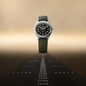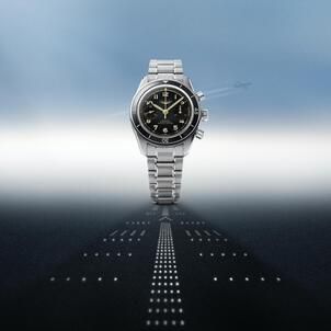 The Spirit Pilot features a redesigned stainless-steel 39 mm case with improved ergonomics and a refined aesthetic that enhances both comfort and visual appeal. The clean matte black dial eschews distraction in favor of pure functionality by removing the five stars and date indication from the original model. Gold-colored hands and applied Arabic numerals create a striking contrast for optimal readability in all conditions and lend the watch its vintage allure.