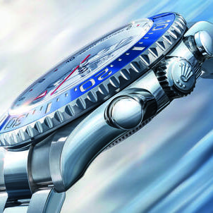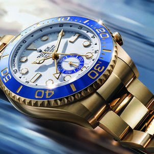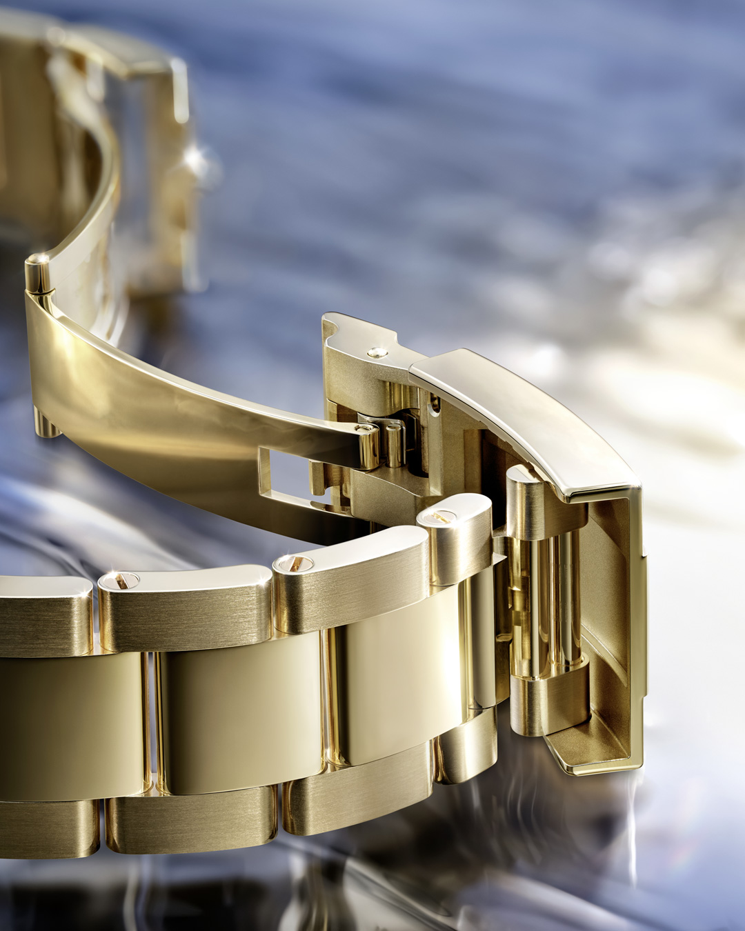 Nautical aesthetics are prioritized in the design, with pusher geometry inspired by the form of winches. Available in Oystersteel or 18 ct yellow gold, the watch features a white matt lacquer dial that contrasts beautifully with a blue Cerachrom bezel insert. It is an exceptional tool watch that enables full command of the timings crucial to a regatta.