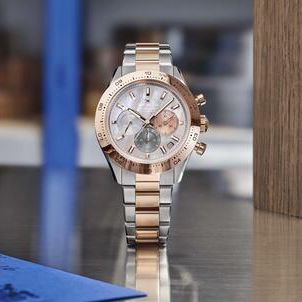 This evolution takes shape through a sharp 41mm architecture that plays beautifully with contrast. While the stainless steel build anchors the watch in technical robustness, the addition of a rose gold bezel, crown, and pushers introduces a sense of warmth and depth. The resulting aesthetic is deliberately versatile, appearing equally at ease in a moment of high motion as it is in more composed, formal settings.