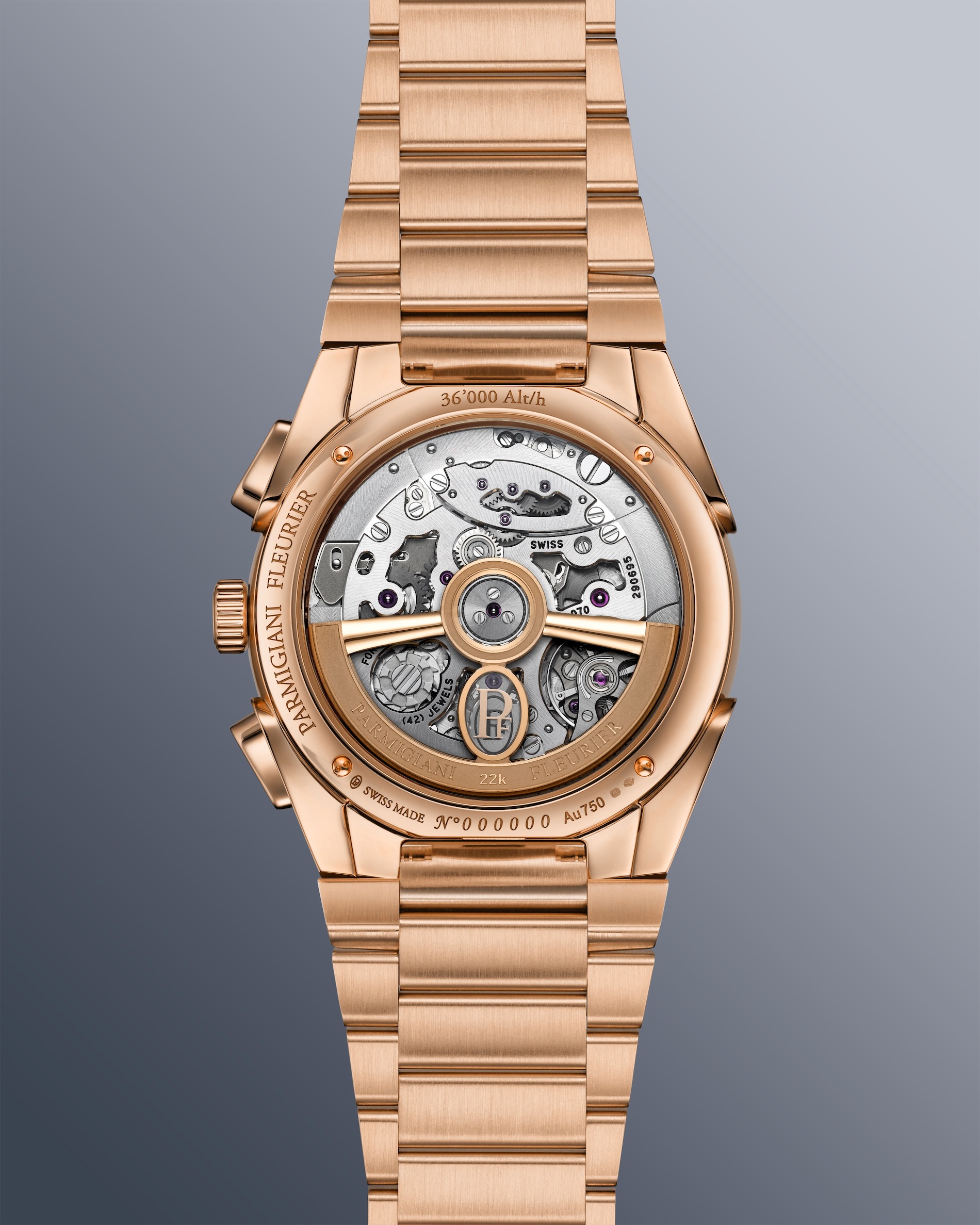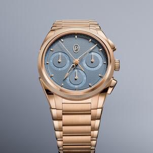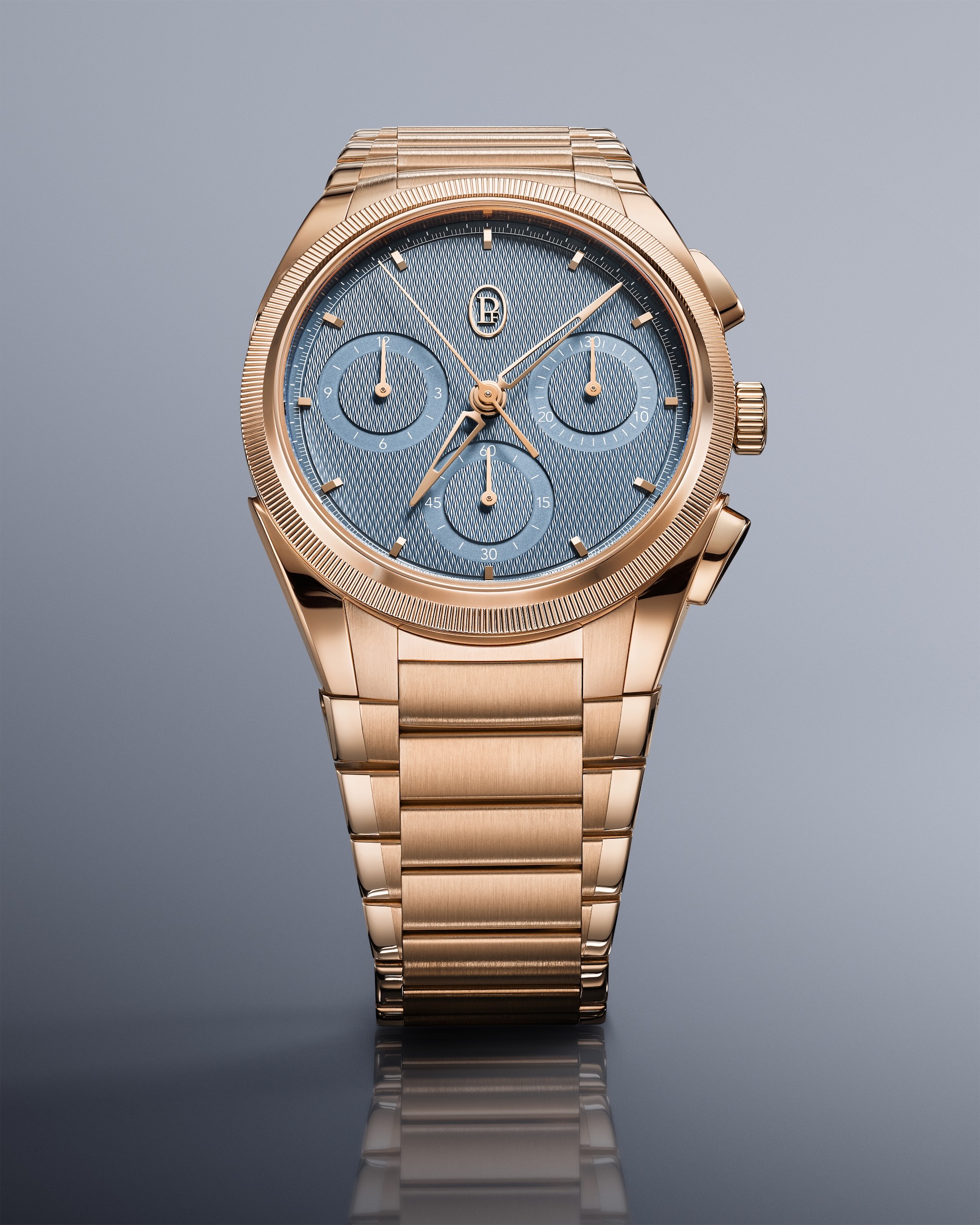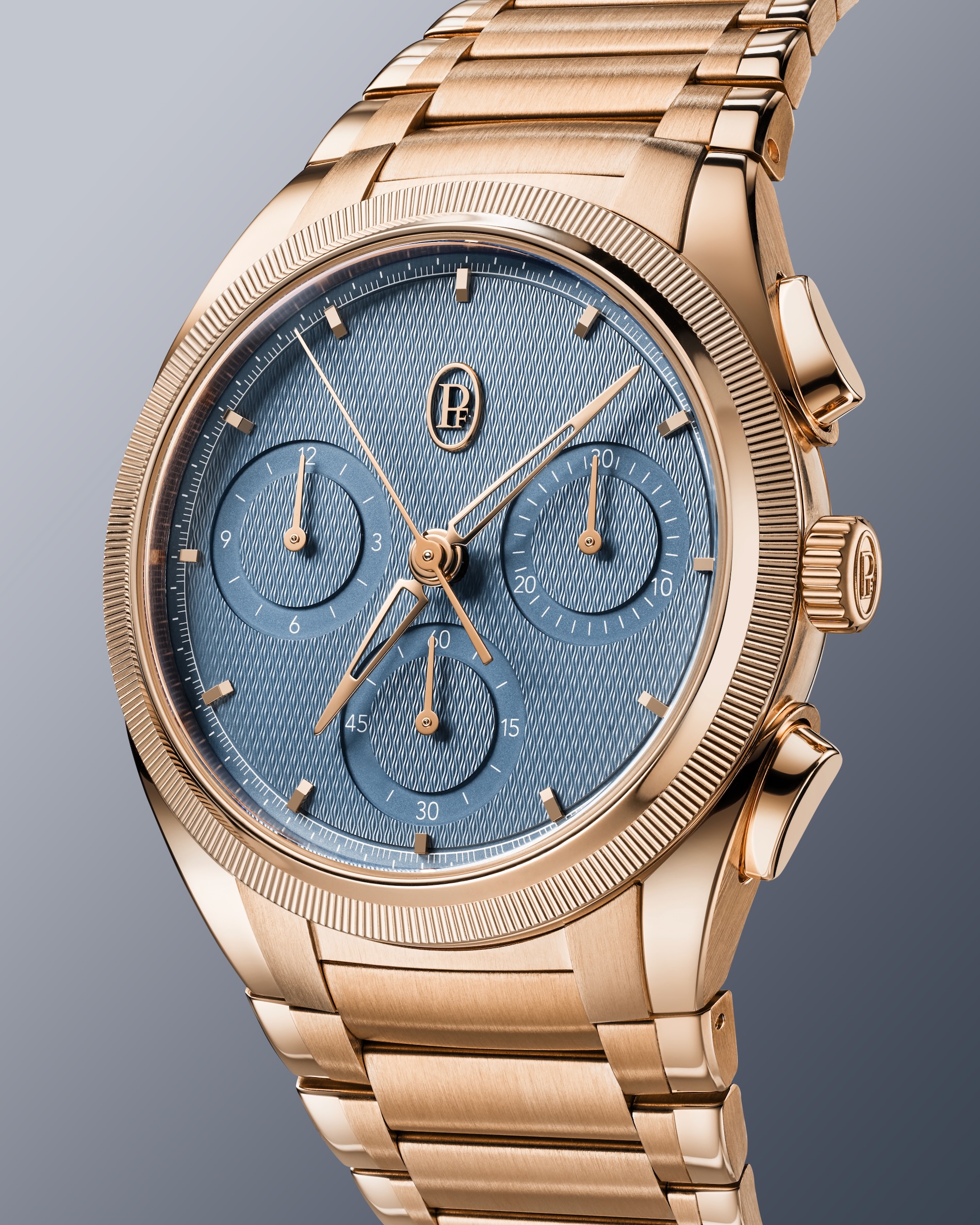Every element of the timepiece is designed to achieve a rare harmony between technical mastery and an understated sort of elegance. This is a chronograph conceived specifically for the wrist, refined in its proportions and expressed through a soft, contemporary chromatic balance. Parmigiani Fleurier has created a measuring instrument of absolute sophistication that rewards the wearer’s attention rather than demanding it.The 40mm case reflects a deliberate search for the perfect proportion. By selecting this size, the brand restores a sense of proximity between the watch and its wearer, enhancing both ergonomics and visual balance. The polished and satin-finished 18ct rose gold, paired with a knurled bezel, ensures the piece fits comfortably for every moment of daily life.