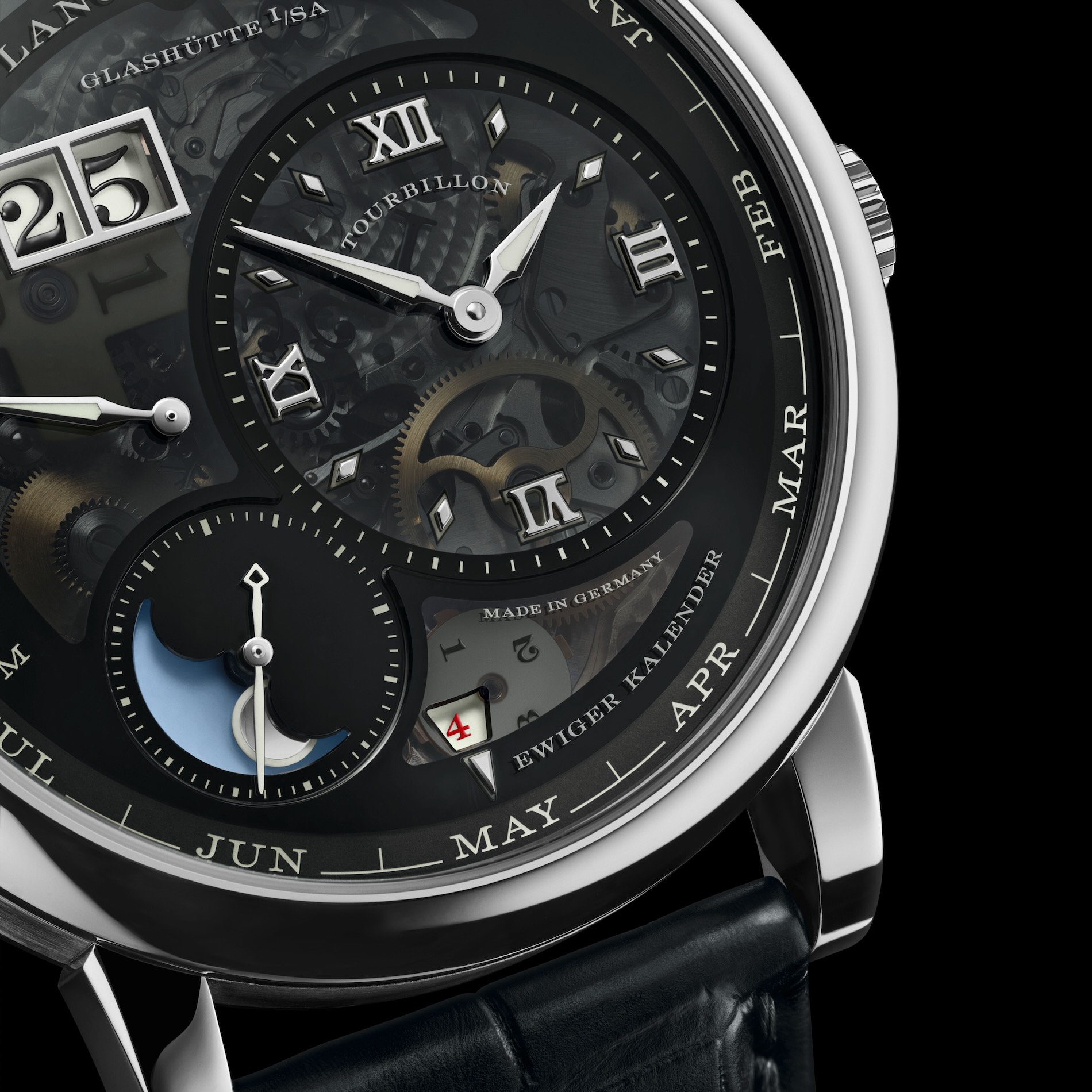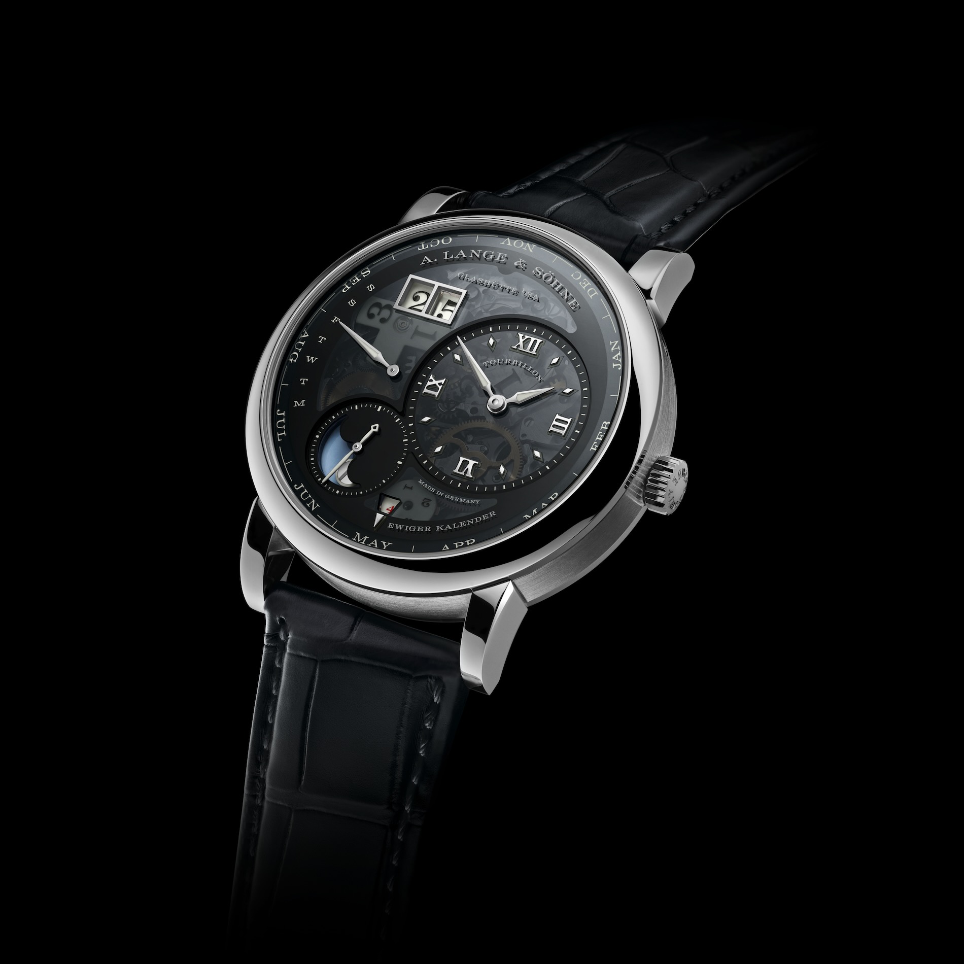 At the heart of this masterpiece lies the newly developed calibre L225.1, a movement so complex it requires 685 individual parts to function. It incorporates two grand complications into the unmistakable, off-centre design that has made the LANGE 1 a modern icon: a tourbillon with stop seconds and a perpetual calendar featuring a unique peripheral month ring. This month ring, along with the outsize date and retrograde day-of-week display, switches instantaneously to produce "unambiguous readings at all times".
