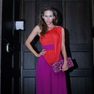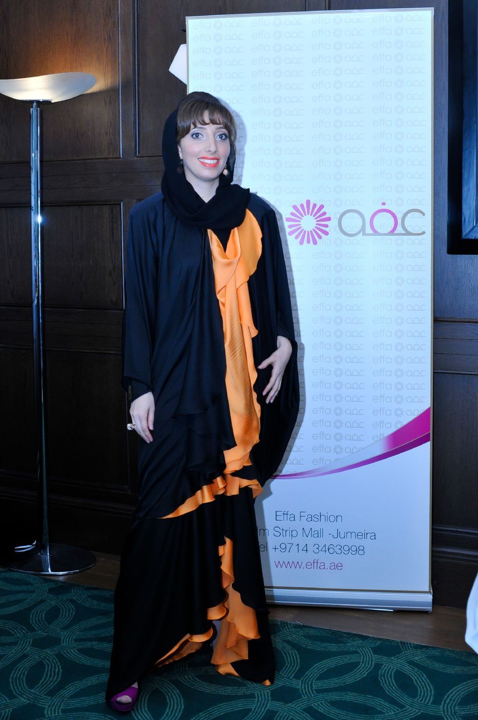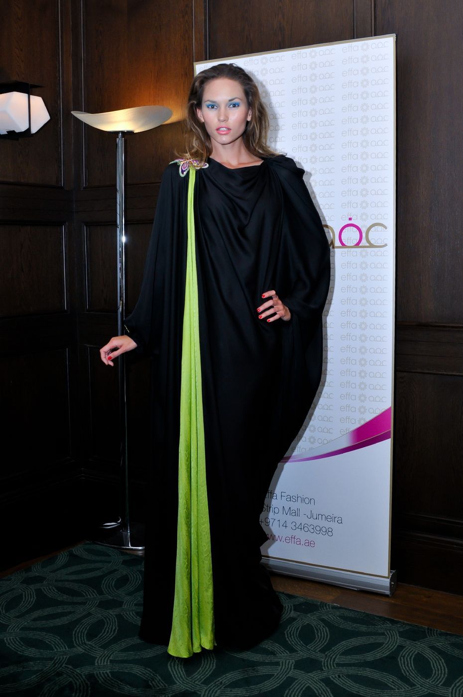 EFFA, Dubai-based Saudi woman Fashion Designer, unveiled her Spring /Summer 2012 collection- strictly invitational only at the high end Ivy at the Emirates Twin Towers Dubai. This time EFFA uses soft materials to create fabulous palettes of strong colors-so arabesque like fuchsia, deep blue, saffron, oyster and corals. Adding modern twists of contemporary techniques, the stereotype arabic dresses splashes modern silhouettes. The total mode is feminine and red carpet.