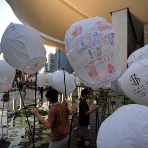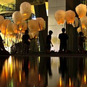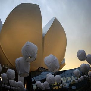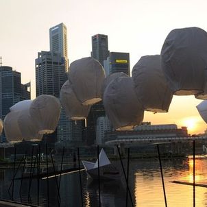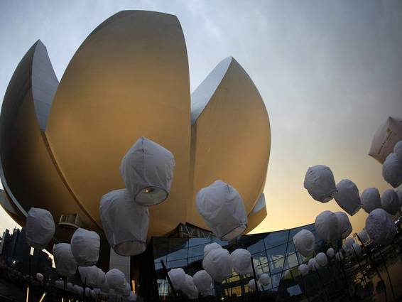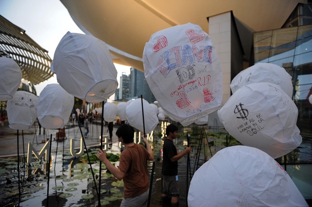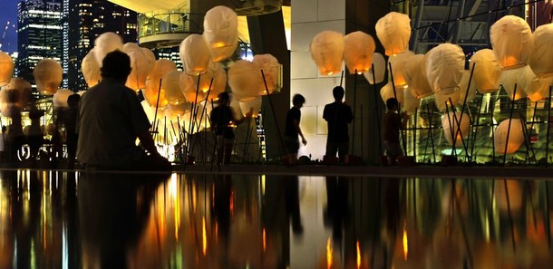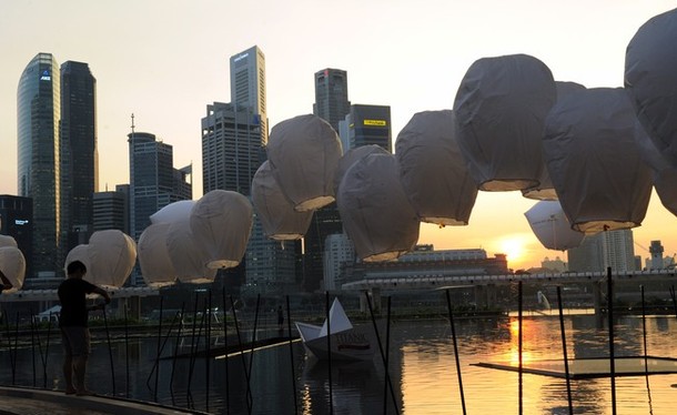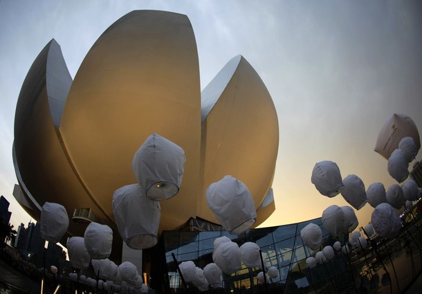 Chinese sky lanterns decorate the area around the Arts & Science Museum at Marina Bay Sands in Singapore April 10, 2012.