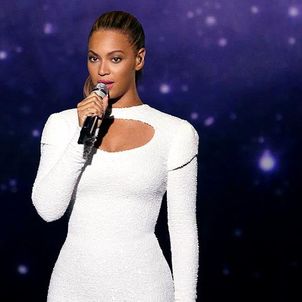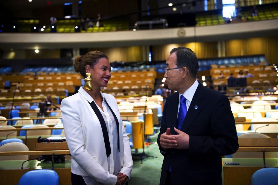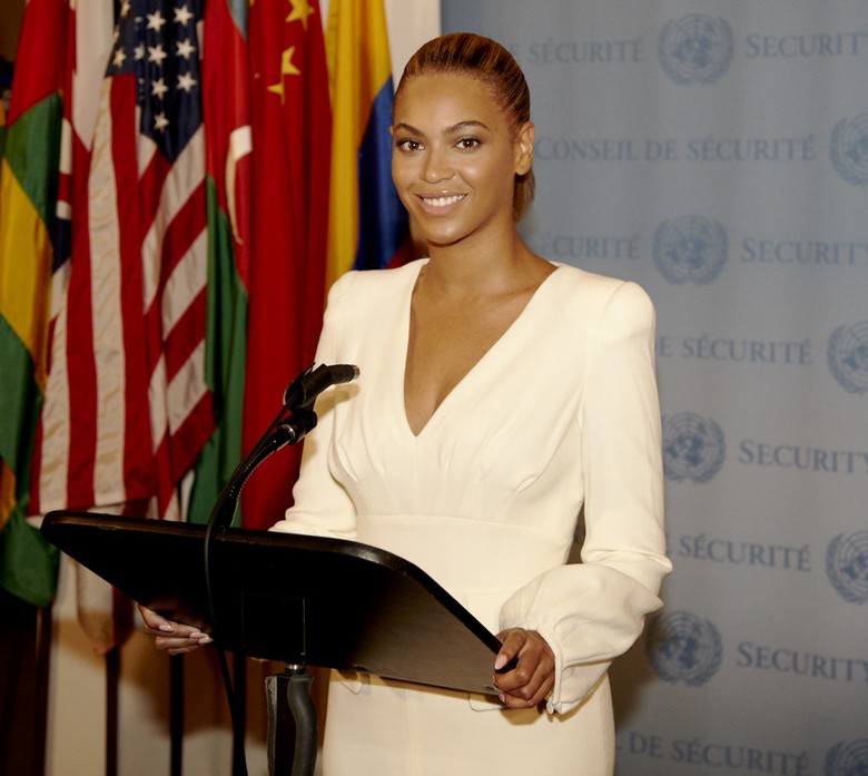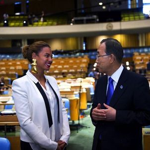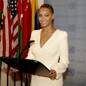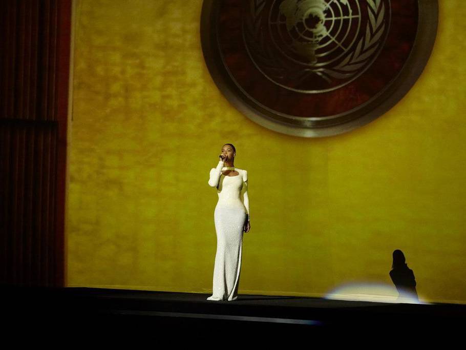 Beyoncé films a live performance of "I Was Here" at the General Assembly at the United Nations in support of World Humanitarian Day 2012.