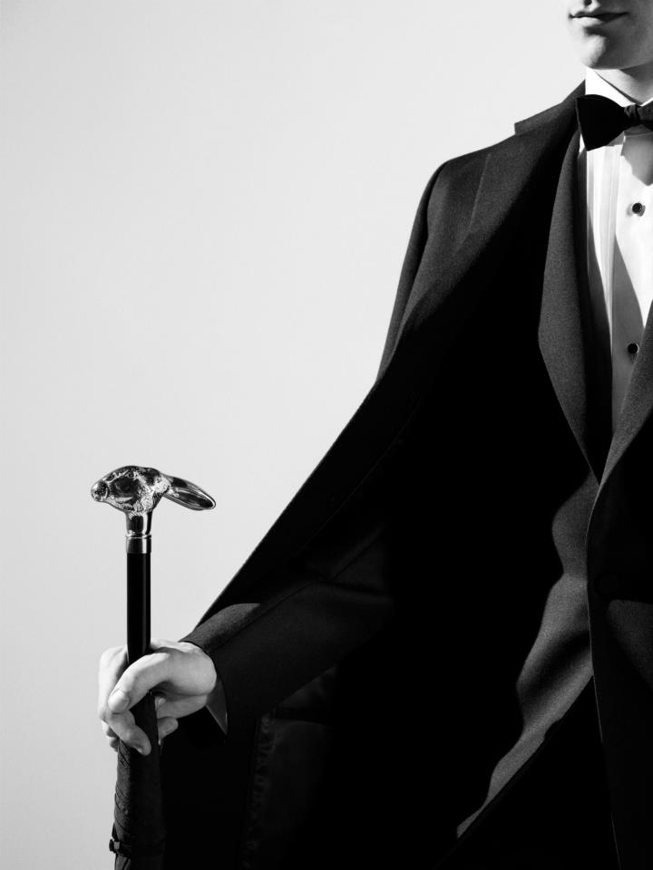 In it, the campaign features the 24 hour bag and single document case in crocodile leather with notable clothing pieces such as the dinner jackets and trousers in mohair, wool or velvet which are paired with the classic white poplin shirt, dress studs, black grosgrain bow ties and scarfs in cashmere or silk.