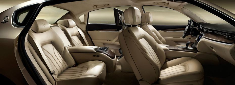 Inside, the design of the Quattroporte aims at essentiality, stressing the simplicity of lines and the full functionality of the in-board instrumentation. Functional elements are blended with soft quality surfaces made of prestigious woods and refined leathers.