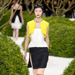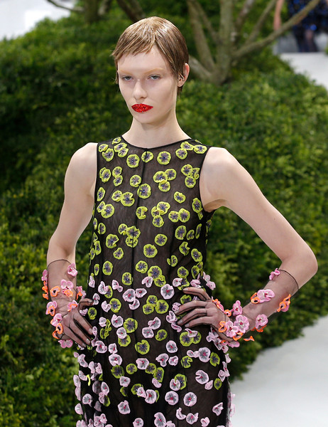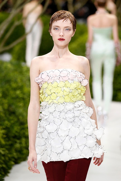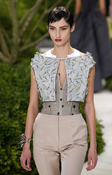 The 47-piece spring-summer 2013 collection featured a range of multi-layered flower and butterfly appliqués stitched on myriad outfits. The 44-year-old Belgian designer’s creations for the brand included tulle-and-silk bustier evening dresses, asymmetrical cocktail gowns and cropped silk tops teamed with embroidered corsets.