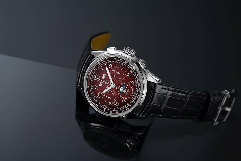 This Singapore-exclusive edition reimagines the classic Datora with a bold burgundy dial, a color choice that represents a first for this core collection. The deep and warm hue serves as a sophisticated reference to the red of Singapore's flag, beautifully juxtaposed against a black alligator leather strap with tone-on-tone stitching. It is a study in modern refinement that stays true to the timeless elegance first envisioned by Willy Breitling in the 1940s.