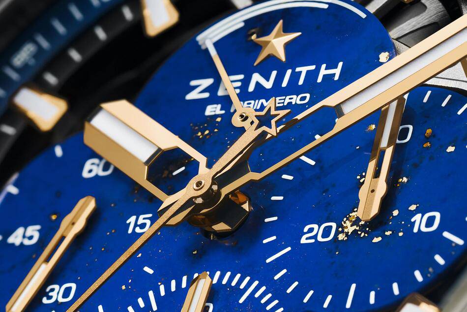 At its heart, the captivating openworked dial is meticulously crafted from lapis lazuli, a celestial blue stone whose deep hue perfectly echoes Zenith's signature color—a symbol of infinity and the pursuit of excellence. Each dial is a natural work of art, scattered with shimmering pyrite inclusions, guaranteeing that no two pieces are ever alike.