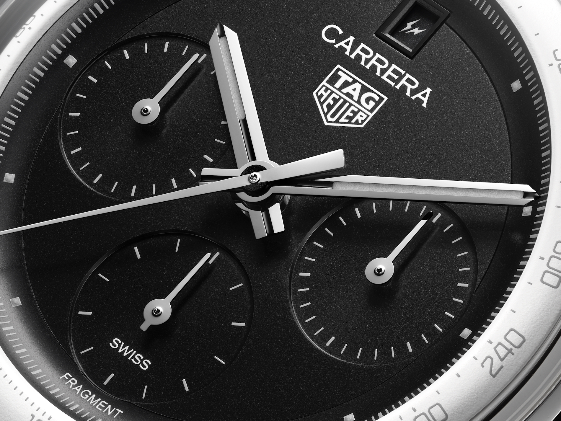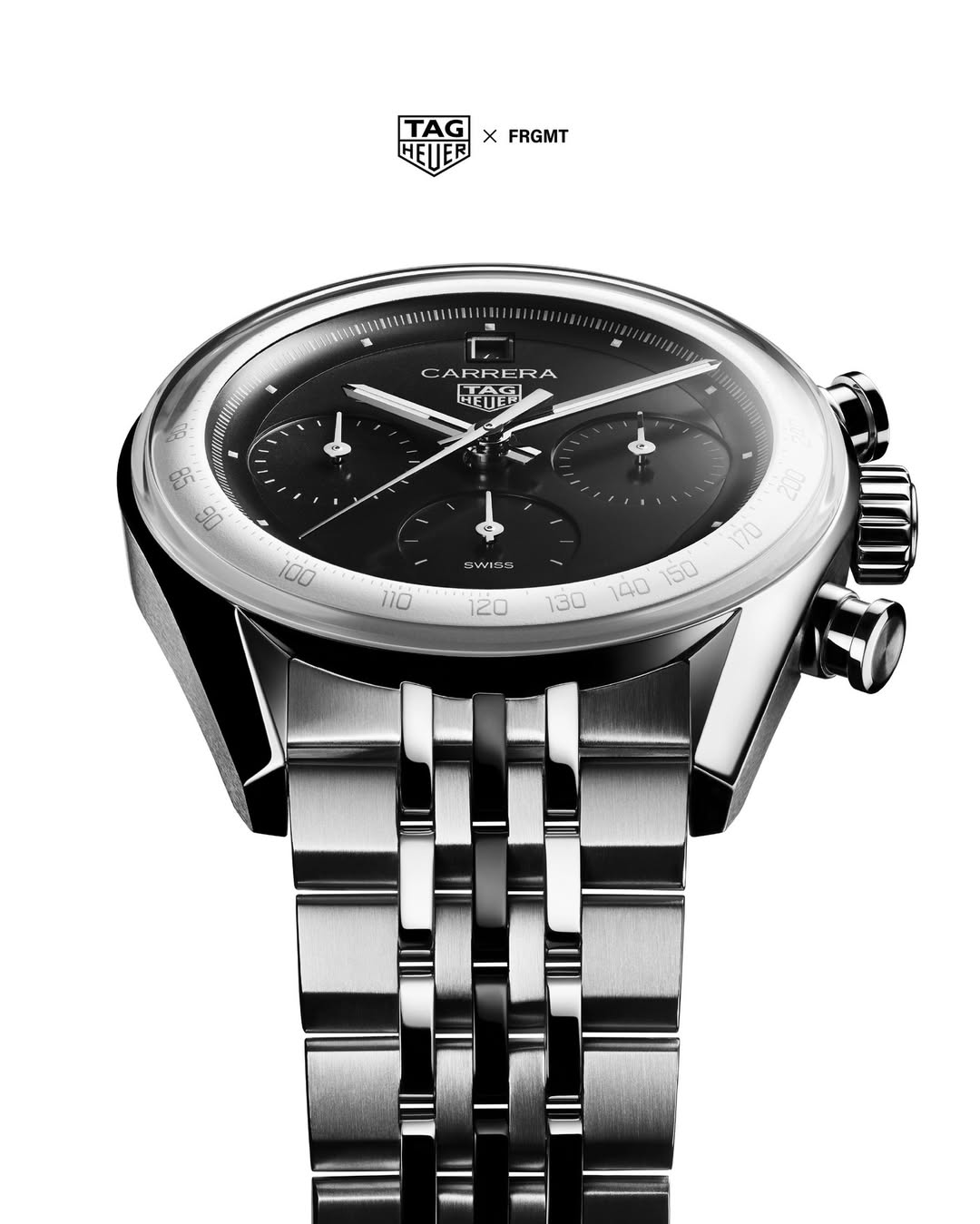 This limited edition reimagines the "Glassbox" Carrera through a lens of minimalist restraint, balancing heritage engineering with Fragment Design’s cult-favorite monochrome aesthetic. The 39mm steel case features a high-contrast black opalin dial and white flange, all framed by a domed sapphire crystal.